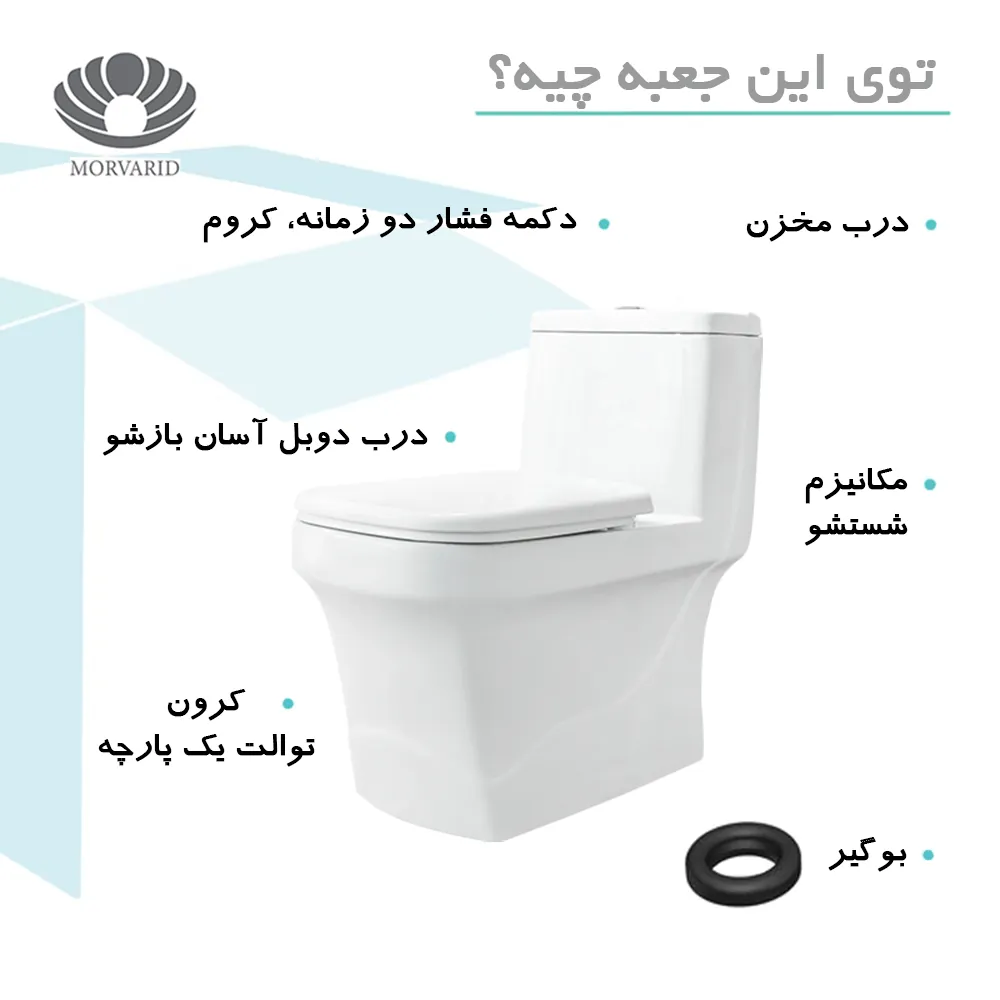 مخزن آب توالت فرنگی دیواری مروارید مدل سیلویا به صورت پنهان در پشت دیوار محل اتصال قرار دارد به همین